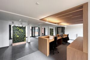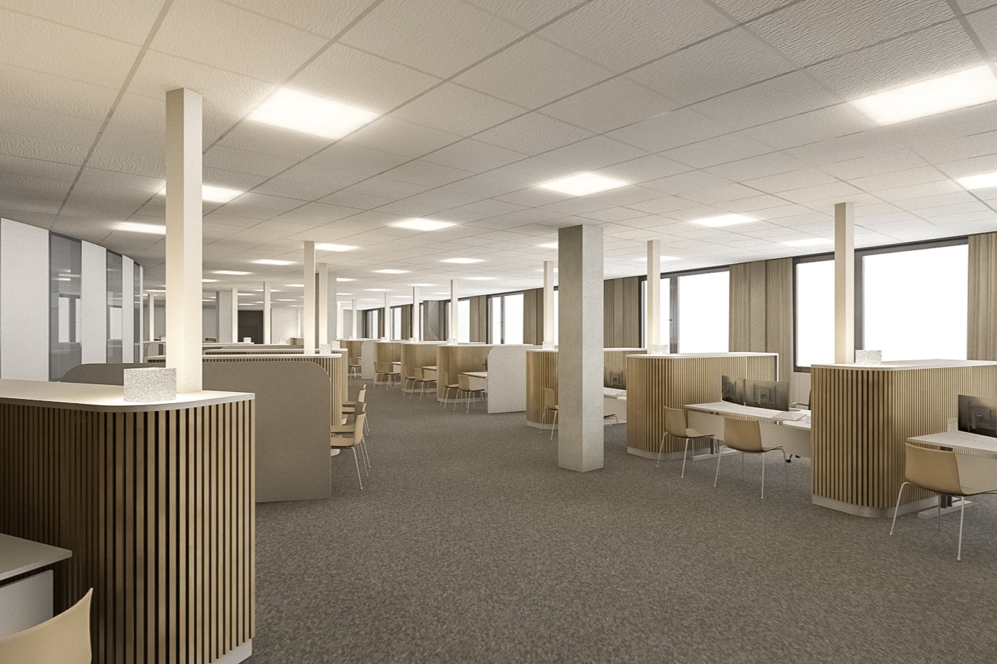 Am Tag der offenen Tür machten sich die Besucher:Innen einen Eindruck vom Verwaltungsgebäude der Städteregion Aachen in Eschweiler. Nach der Flutkatastrophe im Sommer 2021 haben wir das stark beschädigte Bürogebäude nicht nur instand gesetzt, sondern komplett neu gedacht.