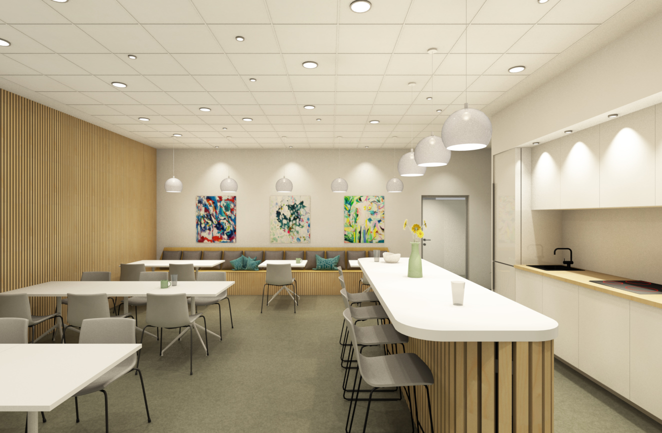 Die Arbeitsplätze sind modern, funktional und auf die Anforderungen eines zeitgemäßen Verwaltungsbetriebs abgestimmt. Hochwertige Materialien, eine zurückhaltende Farbgestaltung und eine ausgewogene Beleuchtung schaffen eine sachliche, zugleich freundliche Atmosphäre.