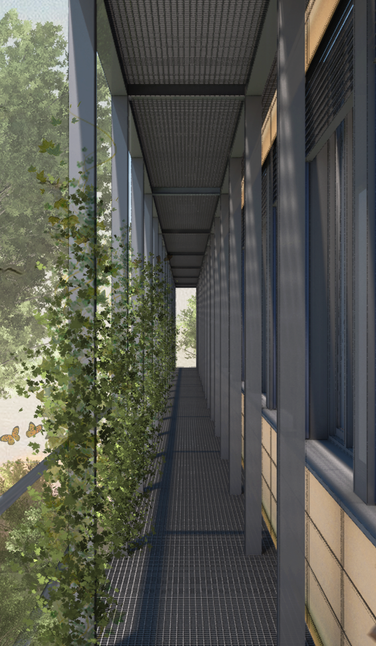 Laubengang und Fassadenbegrünung
